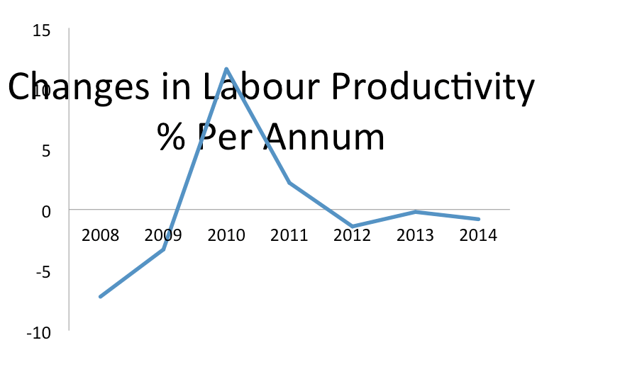 As you can see productivity dropped like a stone in 2008 and 2009, recovered sharply in 2010 and then has been flat to negative over the next four years.