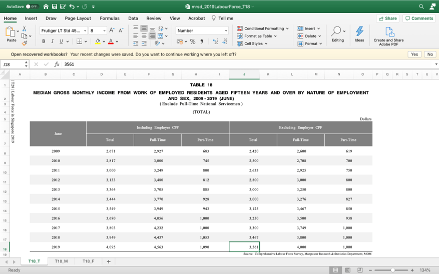 If we exclude Employer CPF contributions MOM’s figures now look like this: